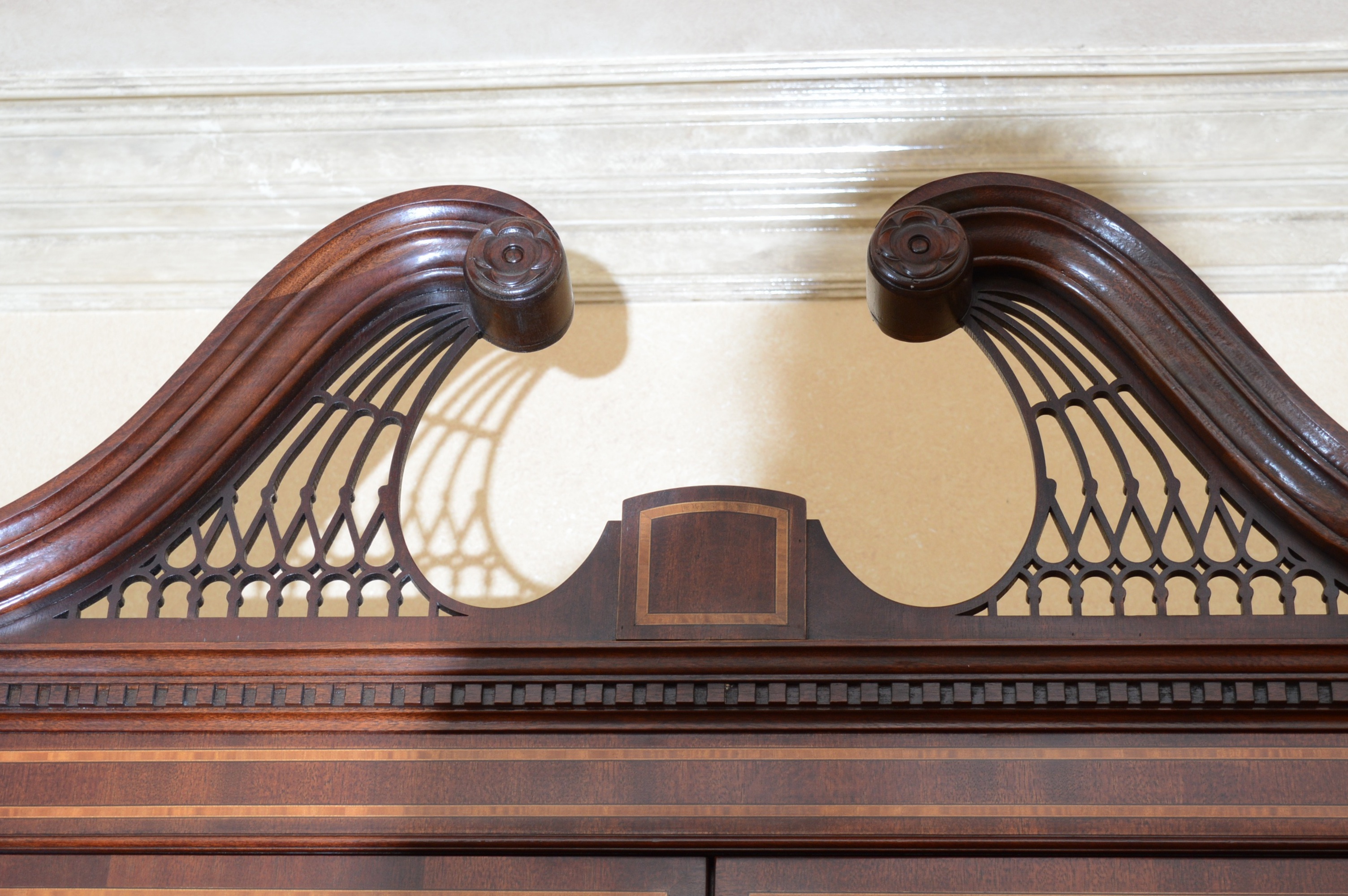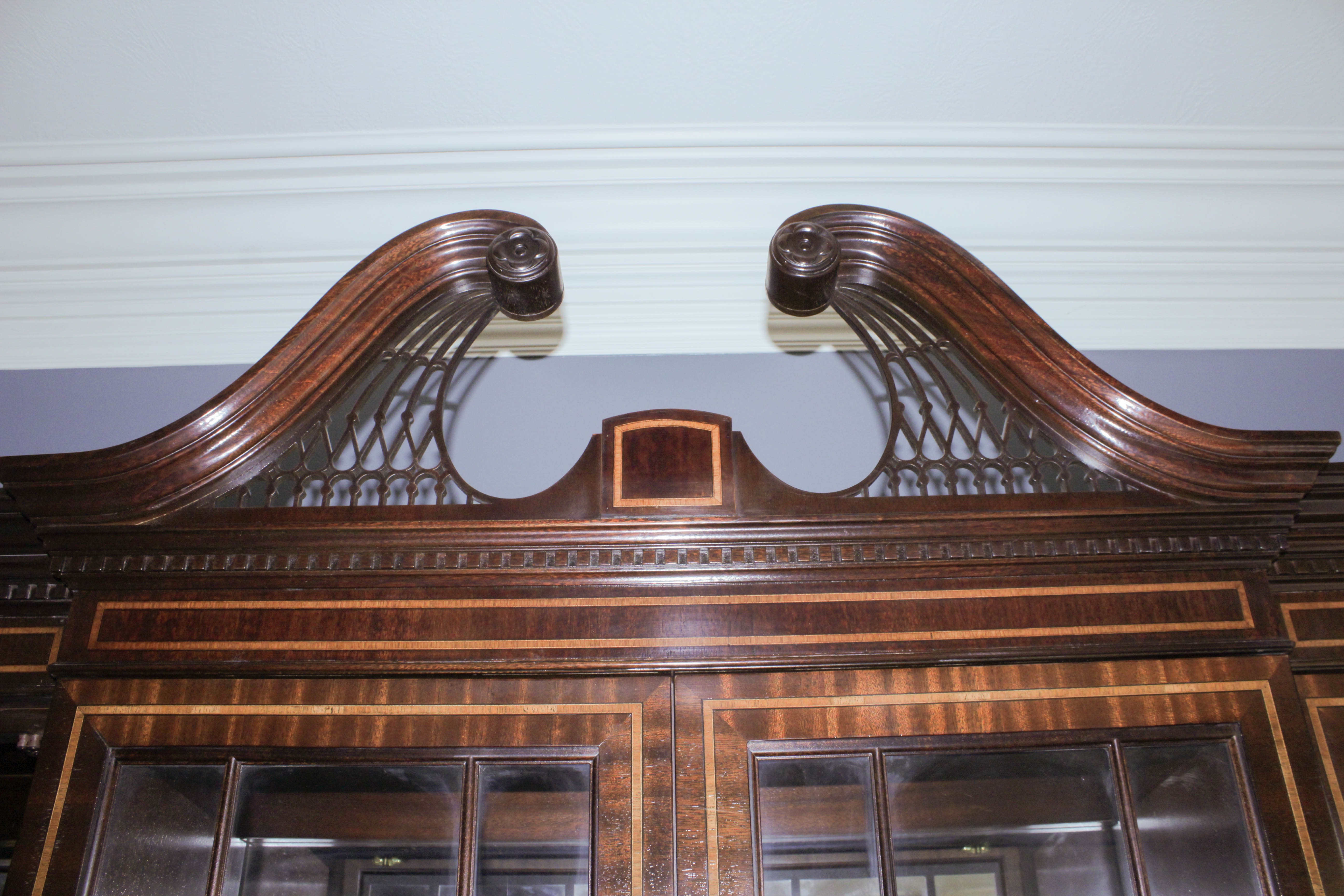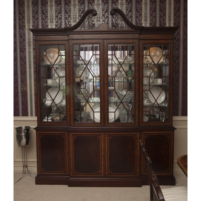 Chippendale style banded mahogany breakfront china cabinet by white of mebane.